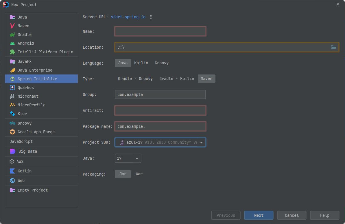 - Package name: Group과 Artifact 조합으로 자동으로 채워진다.