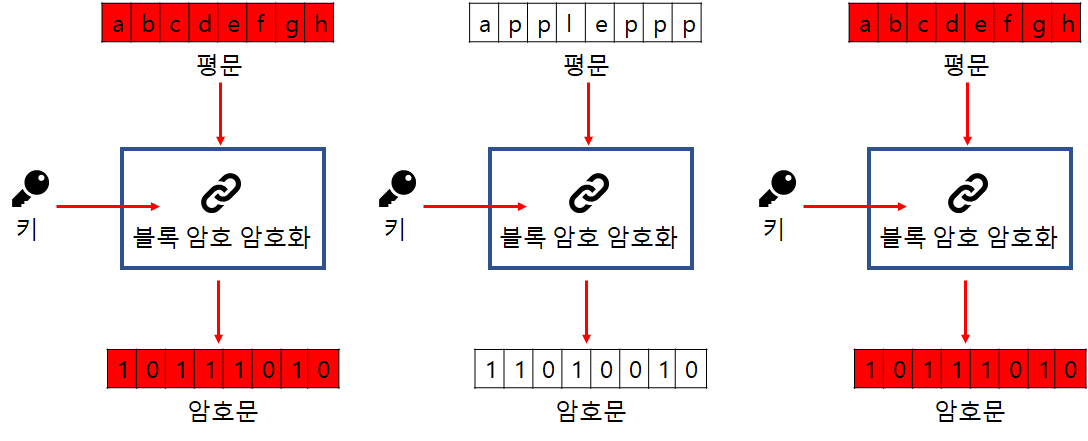 - 암호화하려는 메시지를 여러 블록으로 나누어 각 블록을 독립적으로 암호화하는 방식