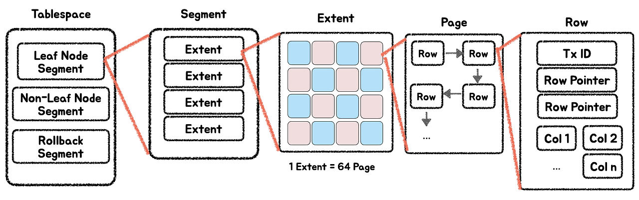 - 기본 페이지 크기가 16KB인 경우, 익스텐트에는 64개의 페이지가 포함되어 있다.