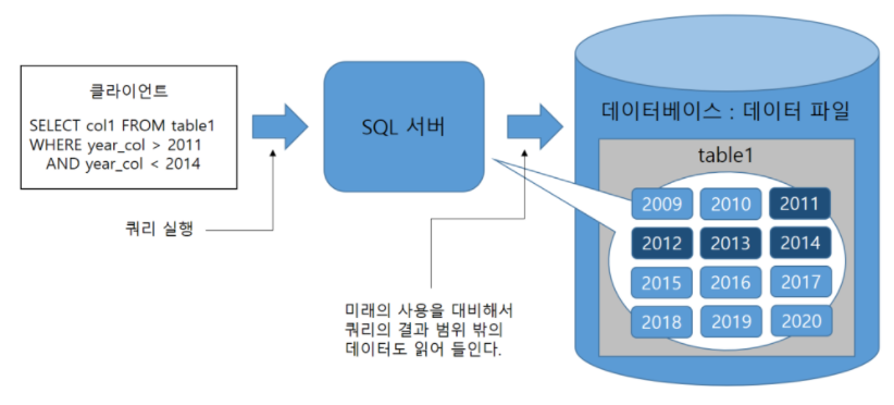 풀 테이블 스캔 방식의 문제점은 테이블의 모든 행을 순차적으로 읽어오기 때문에 상당히 많은 디스크 I/O가 필요하다는 것인데, 대부분의 DBMS는 성능 최적화를 위해 한 번의 디스크 I/O에 인접한 여러 개의 블록이나 페이지를 읽어온다. (MultiBlock I/O)