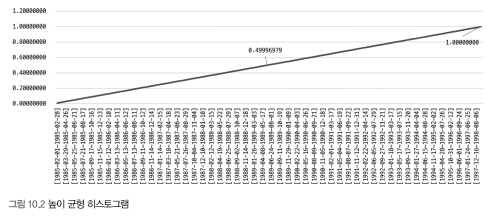 - 히스토그램의 모든 레코드 건수 비율은 누적으로 표시된다.