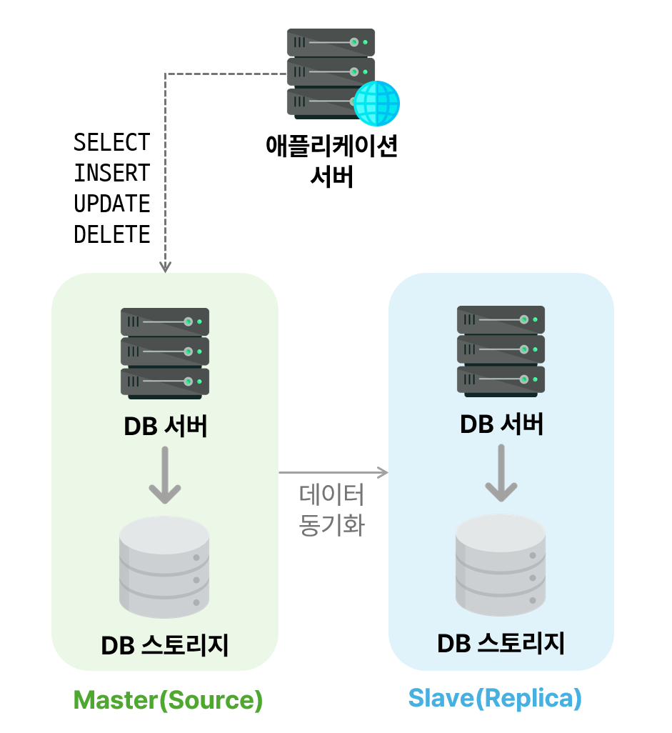 Master 서버에서 발생한 데이터 변경 사항을 Slave 서버로 복제함
