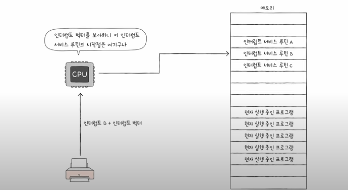 - CPU는 인터럽트 벡터를 통해 특정 서비스 루틴을 처음부터 시작할 수 있다.