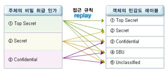 - 객체의 소유자라고 할지라도 그 객체에 접근할 수 있는 보안 등급을 부여받지 못하면 그 객체에 접근할 수 없다.