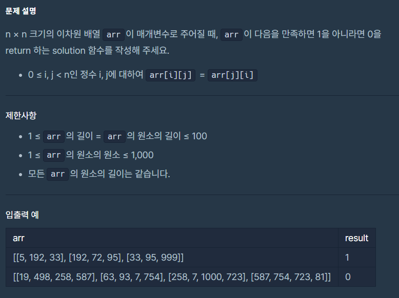 if arr[i][j] != arr[j][i]: