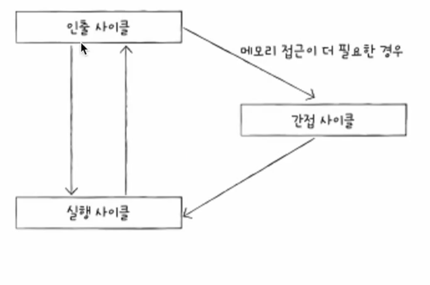 실행 사이클 전에 추가적인 메모리 접근이 필요할 경우 발생함